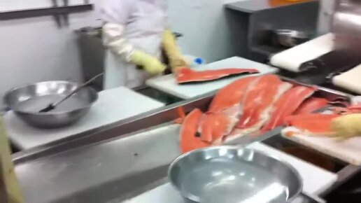 Филетировка (филетирование) красной рыбы. Стол для доработки после филетировочной машины