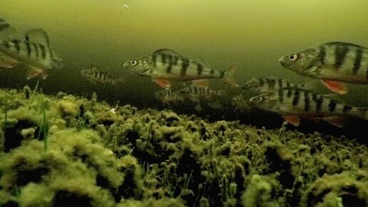 Стая окуней атакует мормышку / A flock of perch attacks the jig