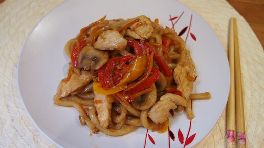 Корейская кухня: Терияки удон (야끼우동) или Лапша с курицей и овощами в устричном соусе