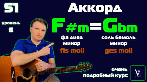 УРОК №51. F#m на гитаре. Gbm на гитаре. Как играть аккорд F#m на гитаре. Как играть Gbm на гитаре. fis moll. ges moll.