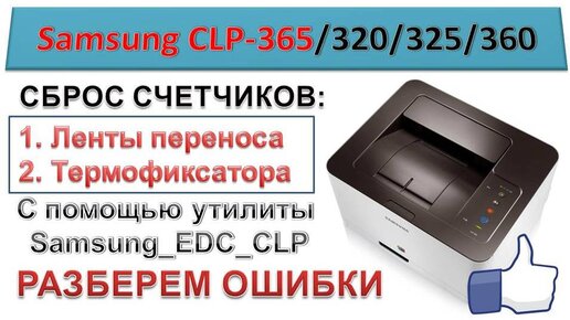 #49 Samsung CLP 320 / 360 / 365 сброс счетчика ленты переноса и термофиксатора | Samsung EDC CLP