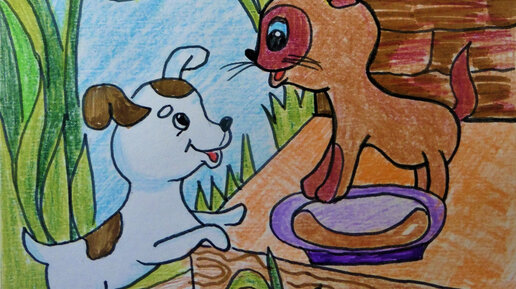 Как нарисовать котенка Гав и щенка - рисунок-раскраска для самых маленьких