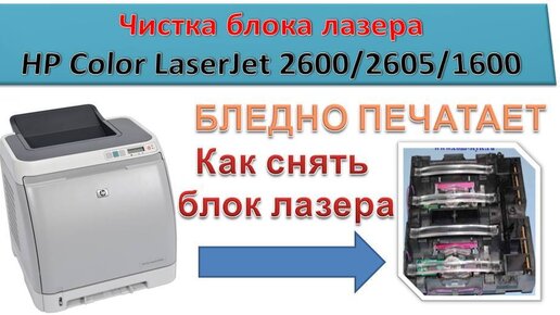 #56 Принтер HP CLJ 2600 / 2605 / 1600 чистка блока лазера | Бледная печать | Пропал красный цвет