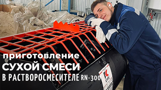 Приготовление сухой смеси для укладки брусчатки в растворосмесителе. Работа на производстве