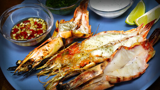 Жареные креветки на гриле + соус к креветкам ( сразу 3шт! )