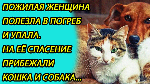 Удивительное спасение.Пожилая женщина полезла в погреб и упала.На спасение прибежали кошка и собака