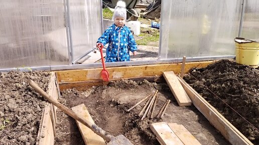 Обустройство теплицы внутри. Первая грядка и первые посадки.
