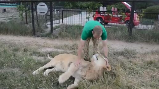 Молодой лев пытается сделать "кусь". Но с ним проводят замечательную воспитательную беседу и он сразу все понимает
