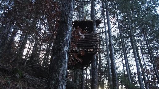 Строю шалаш на дереве в горах.