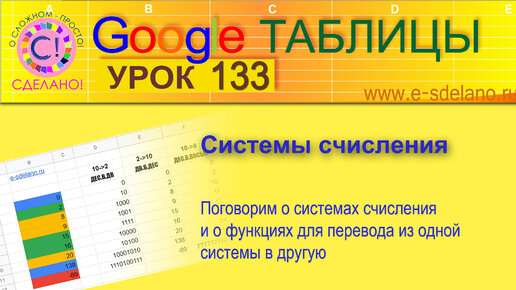 Google Таблицы. Урок 133. Системы счисления. Функции для перевода чисел из одной системы в другую