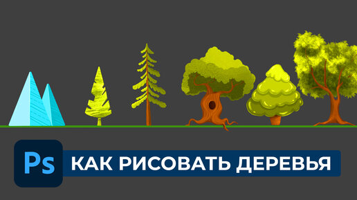 КАК РИСОВАТЬ ДЕРЕВЬЯ в ФОТОШОП. Урок для начинающих рисовать в Photoshop