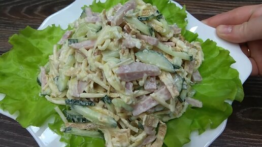Очень вкусный салат. Салат с яичными блинчиками. Салат "Блинный"
