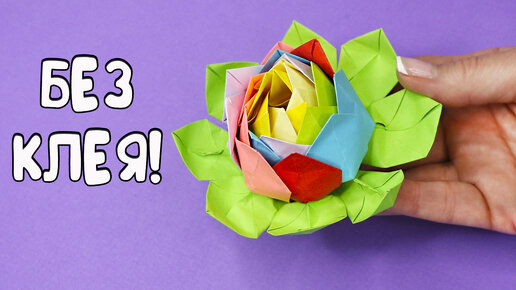 Шикарный ЦВЕТОК из бумаги СОВСЕМ БЕЗ КЛЕЯ! Поделки ОРИГАМИ для детей