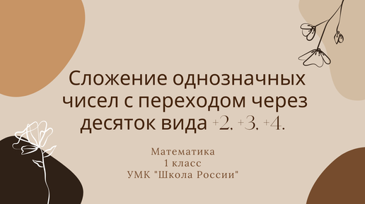 Сложение однозначных чисел с переходом через десяток вида +2, +3, +4. Урок математики в 1 классе.