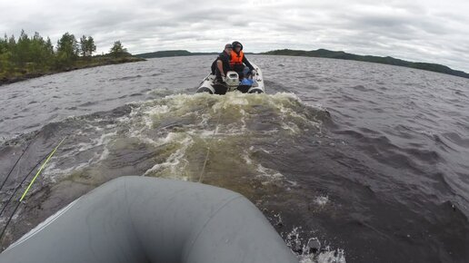 На надувной лодке буксируют по Ладожским шхерам