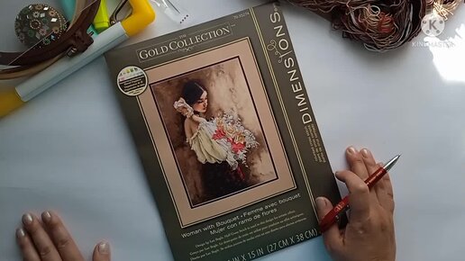 Вышивальный подарок. Распаковка набора Дименшенс "Женщина с букетом". Подарок от Алены Хилтунен.