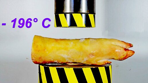ГИДРАВЛИЧЕСКИЙ ПРЕСС ПРОТИВ СВИННОЙ НОГИ ОХЛАЖДЕННОЙ В ЖИДКОМ АЗОТЕ