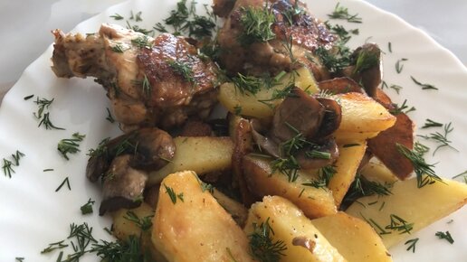 Готовлю куриное бедро С картофелем и грибами С добавлением сливок