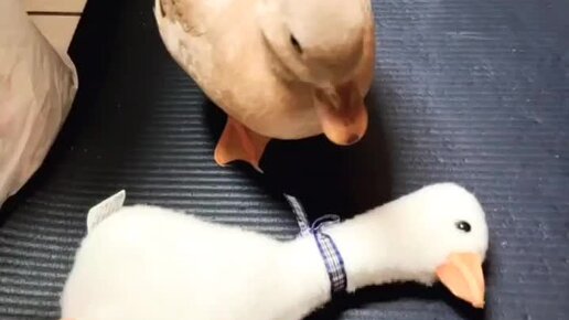 Утке подарили игрушечную утку... Что она с ней делает...
