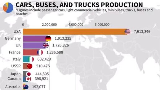 Залипательная инфографика о количестве производимых транспортных средств в разных странах