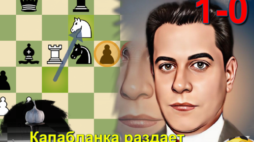 Нечасто Хосе Капабланка так раздавал фигуры: ладью, слона, коня - в итоге мат ставит "поцелуй смерти" Джаффе (США, 1910, 1-0)
