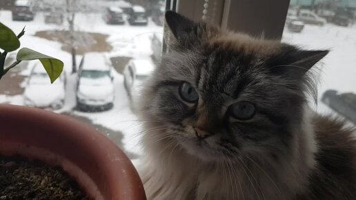 Милое видео: кошка наблюдает, как идет снег в последний день апреля.
