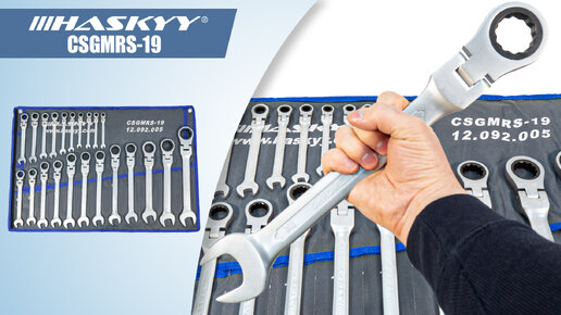 Распаковка набора гаечных ключей с трещоткой и шарниром 6-32 мм в мягкой упаковке CSGMRS-19 | HASKYY