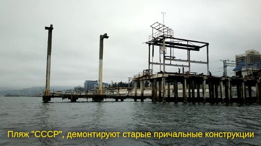 Адлер, на пляжах Курортного Городка наконец то начали сносить старые, полуразрушенные причальные сооружения!