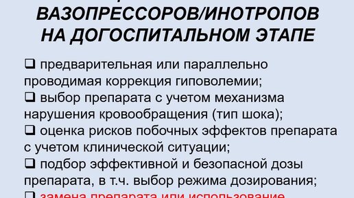 Лекция: инотропные и вазопрессорные препараты в комплексе интенсивной терапии на догоспитальном этапе
