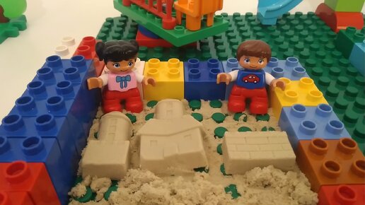 Лего дупло мультик. строят башню из песка, катаются на каруселях, играют в прятки.