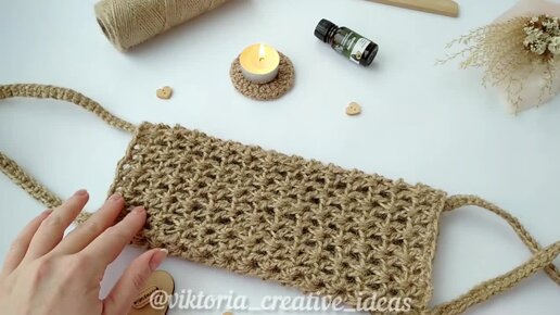 Вязаная мочалка из джута крючком. ЭКО аксессуар для бани и сауны. Пилинг кожи в домашних условиях.