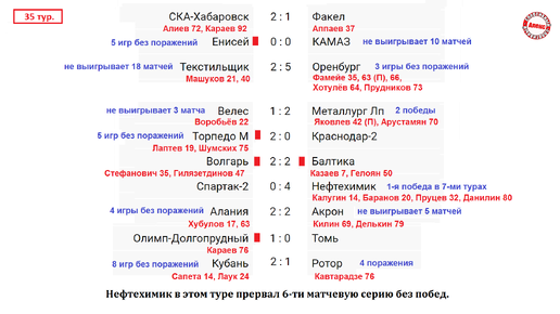 Чемпионат России. ФНЛ. 35 тур. Результаты. Расписание. Таблица.