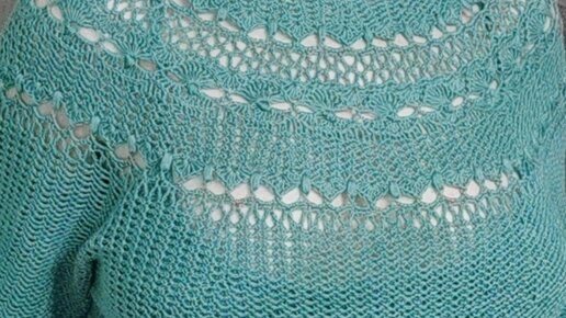 Вяжу крючком.Топ-футболка с круглой кокеткой.