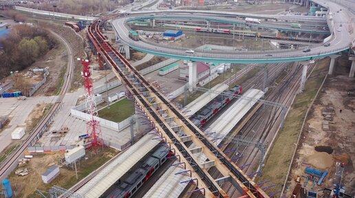 Вид с квадрокоптера на строительство Юго-Восточной хорды (МСД) в районе станции МЦК "Андроновка"