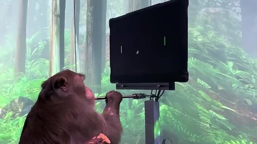 ОБЕЗЬЯНА ИГРАЕТ В ВИДЕОИГРУ «СИЛОЙ МЫСЛИ»