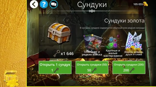 Открываю сундуки в Gems of war