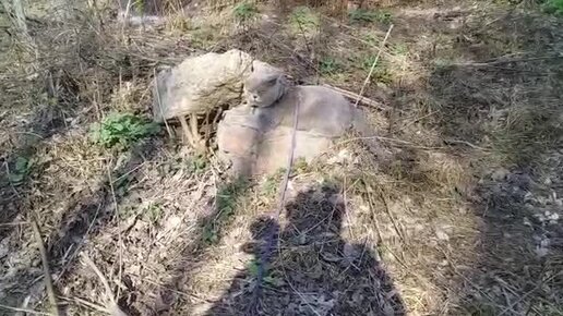 Котик на камешке отдыхает.