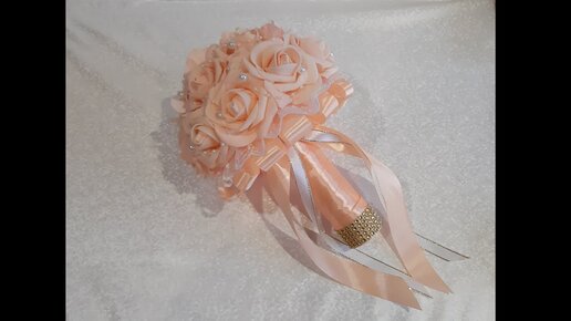 Изготовление свадебного букета-дублёра в персиковом цвете. МК по созданию букета из фоамирана.