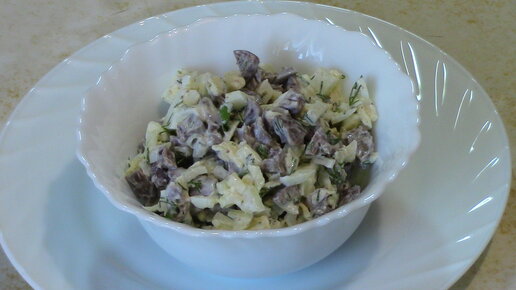 Салат с куриными сердечками. Просто, сытно и очень вкусно!