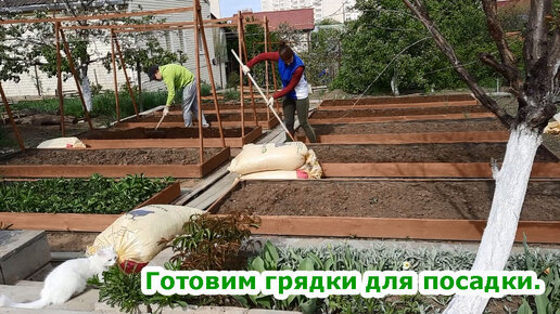 Готовим красивые грядки к посадке)). Вносим в землю навоз.