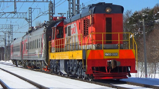 Тепловоз ЧМЭ3-3920 с двумя лабораторными вагонами "Диагностического комплекса Спринтер-Интеграл"