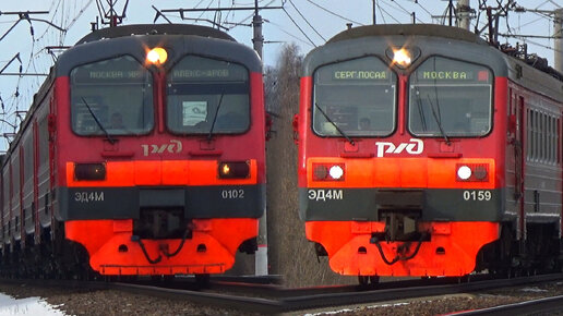 Встреча электропоездов ЭД4М-0102 и ЭД4М-0159