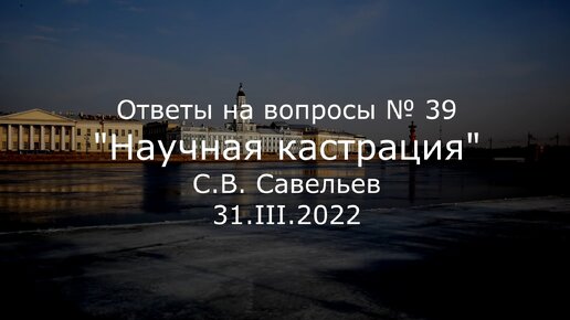 С.В. Савельев - Научная кастрация /31.03.2022/