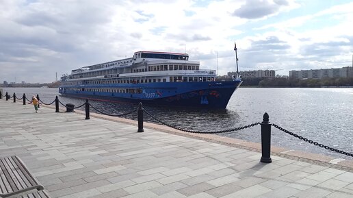 Теплоход "Лунная соната" подходит к причалу для посадки туристов на борт. Москва, 29.04.2022