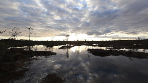 Ветренный вечер на топком болоте. Карелия