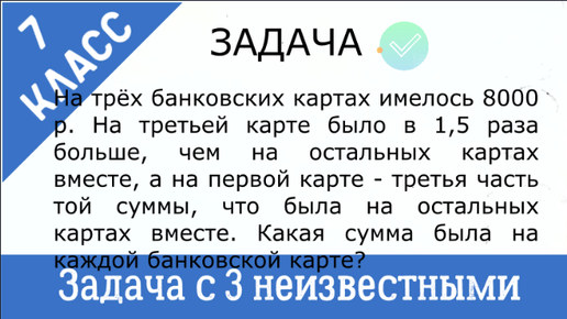 В советское время мы не решали таких задач. Задача с тремя неизвестными повышенной сложности. Это 7 класс. Ответ в конце видео.