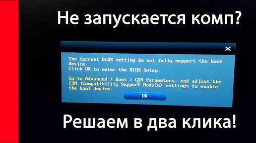 Не запускается компьютер: The current BIOS setting do not fully support the boot device.