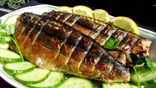 Скумбрия на решетке, на костре. Рыбный шашлык