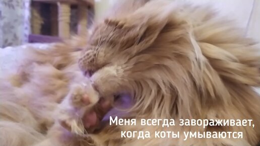 Мейн-кун Арчибальд любит умываться, а я люблю за ним подглядывать