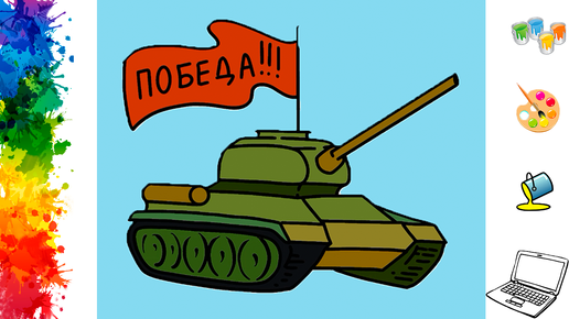 Раскраски для детей Танк на 9 мая на компьютере, раскрашиваем простые детские рисунки
